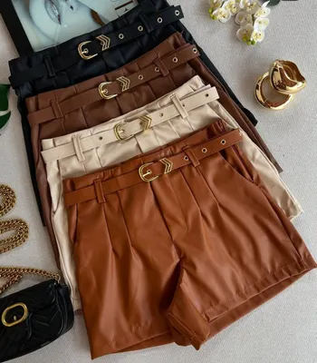 Shorts couro com cinto boho