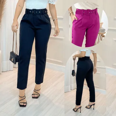 Calça alfaitaria Pantalona com cinto