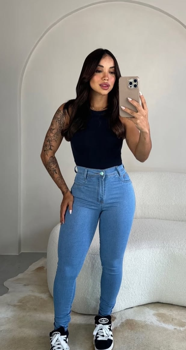 Jeans lavagem clara com elastano
