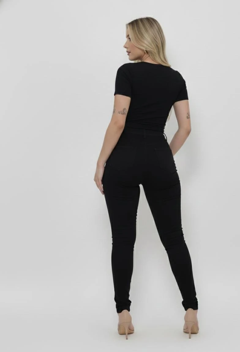 Calça Jeans com laycla skinny Preta